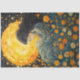 This captivating artwork features a young woman enveloped by a vibrant array of sunflowers and daisies, illuminated by a luminous golden moon. The rich hues of deep blues and vivid yellows create a striking contrast, embodying the flowing lines and organic forms characteristic of Art Nouveau design.