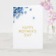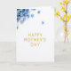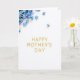 Designed with a calm, celebratory look, the card centers on the words “HAPPY MOTHER’S DAY” in raised, metallic gold letters that catch the light ❤️. The lettering sits prominently in the middle, with gentle shading beneath each character to give it depth against the white background. In the upper left corner, a clustered spray of small sky-blue flowers leans inward, like a soft bouquet offered with affection. Their yellow centers add a sunny touch, and a few loose blossoms drift across the top area, suggesting a tender, just-placed arrangement 🌼. The wide open white space keeps the focus on the message while letting the colors feel airy and balanced. The gold text feels warm and inviting beside the cool blue petals, creating a quiet, caring mood through contrast rather than extra decoration. Several tiny blue blooms appear scattered near the top edge, with the densest grouping anchored at the upper left.