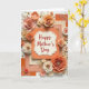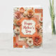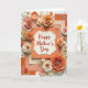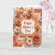 This card features a cream-colored, scalloped plaque with a dotted border centered on the front, creating a gentle focal point for Mother’s Day ❤️. The words “Happy Mother’s Day” sit in the middle in flowing red lettering, standing out clearly against the light background. Around the plaque, layered paper flowers bloom in soft peach, ivory, and coral shades, arranged like a caring bouquet gathered with extra attention. Many blossoms have tiny gold bead clusters at their centers, adding a delicate sparkle that feels like a quiet thank-you. Gold accents—small round sequins, leaf-like sprigs, and star-shaped baubles—are scattered nearby, catching the light like little warm glints. Beneath the flowers, stacked paper panels show faint line textures, subtle floral patterns, and scattered gold speckles, giving the layout depth without feeling busy 🌼. The background is lit with bright, diffused light, and the gold details shimmer softly along the edges of the floral arrangement.