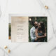 This gorgeous, modern wedding save the date card features an elegant, neutral and gold foil abstract design along with a scannable QR code, two of your personal photos, and classic text.