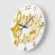Golden music notes with golden numbers wall clock for home or office, dorms,school and more.