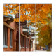 A golden autumn peaceful city sidewalk scene of the graceful historic Hyland and Olive buildings, circa 1905.