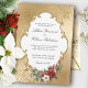 Plain white envelopes are included with paper invitations and will come to fit the invitation size you select. If you don’t need the envelopes, you may choose to not receive them by selecting the dropdown below "Envelopes" and choosing "None." If you’d like to have a design on your envelopes, you can browse all of these available envelopes to find the design that complements your Golden Opulence Christmas Floral Wedding Invitation.