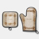 Golden Ornate Rectangle Dimond Flowers Shiny Oven Mitt & Pot Holder Set