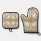 Beautiful Golden Ornate White Flowers Oven Mitt & Pot Holder Set