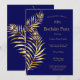 Golden Palm Navy Blue Gold Birthday Party Invitation