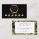 Coordinates with the Golden Palms Spray Tanning Salon Logo on Black Business Card Template by 1201AM. A modern and simple logo of palm leaves are silhouetted within a hexagon shape containing your name or business name on this customizable loyalty card template. Set on a black background for a glamorous aesthetic. Perfect for tanning salons, waxing salons, tropical or coastal beauty salons/spas, and more. Update the promotion for your own unique offering. Art and design © 1201AM CREATIVE