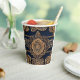 Golden patterns is a beautiful AI art that shows floral golden design on a dark blue background. They are the perfect paper cups to impress your guests.
