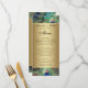 Wedding menu card... Elegant and refined peacock feather background in rich saturated colors of royal blue, copper gold, and teal emerald green. The peacock is a stately bird with ornamental feathers and it makes a beautiful display for a summer wedding or any occasion Metallic looking gold gradients add a touch of glamor and refinement.