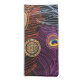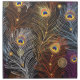 Seamless bright pattern of different golden peacock feathers on a dark background. Example of a gold feather pattern for a website or fabric