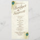 Elegant golden peacock feather design printed rack card wedding programs with brown text.