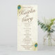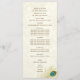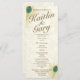 Elegant golden peacock feather design printed rack card wedding programs with brown text.