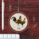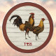 This heritage rooster poultry wireles charger brings a touch of French farmhouse country chic to your decor and gift-giving. These two golden penciled hamburgs - or hamburghs - are set aganst a weathered whte wood background. The combs and tail feathers show off beautiful plumage. This would be a handy way to charge your electronics, as well as make a great Chrstmas, birthday, or anytime gift The design is surrounded by a maroon -- very dark red -- border. This vintage artwork is public domain work from the 1921 Book of poultry, and is made available via the Biodiversity Heritage Library on the Flickr Commons.