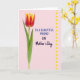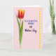 Designed with a soft pale pink background, the card centers on a single tall flower rising along the left side, its petals shifting from deep red into warm golden yellow at the tips. A fresh green stem and a few leafy shapes hug the bloom, and the gentle curves make it feel like it’s leaning in with quiet affection ❤️. On the right, the message is arranged in two text styles, with neat blue lettering on the upper lines and a darker, flowing line beneath it that looks like a more intimate note. The spacing keeps the flower and words close, like a friendly conversation across the page. Light falls evenly across the design, bringing out the petal texture and the smooth, matte look of the background. Along the far right edge, a vertical row of small yellow circles forms a simple border, like little suns 🌼. The blue text sits to the right of the flower, while the darker flowing line appears just below it, and the yellow dots run straight down the outermost margin.
