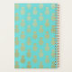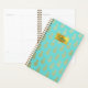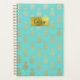 Stylish daily / monthly planner done in turquoise with a golden pineapple pattern. Graphics of a gold tone plaque, on the front of the planner, has turquoise custom text ready to personalize.