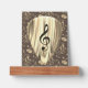 This elegant design combines musical aesthetics with a luxurious gold marbled look. The focus is on a classy guitar pick with a curved treble clef graphic, surrounded by a harmonious pattern of gold notes on a warm brown background. Perfect for music lovers, guitarists and anyone looking for a stylish tribute to music. Ideal for personalized gifts, accessories or decorations with a musical flair.