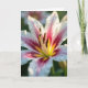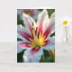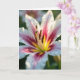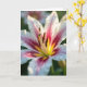 Designed with an up-close view of a flower’s heart, the image fills the card with a tender, romantic focus ❤️. White petals curve inward like a soft embrace, while magenta and deep crimson streaks draw the eye toward a glowing center of yellow and warm orange. The color shift feels like two close friends leaning in, with the brighter tones meeting the darker ones in a gentle, intimate blend. In the middle, tall stamens stand clearly, their tips dusted with golden-brown pollen that adds a textured, touchable look. A slim olive-green pistil rises nearby, adding a quiet contrast against the warmer hues. The background fades into a smooth blur of green with faint pink hints, keeping all attention on the flower’s center. The message “Happy Mother’s Day” sits near the top in soft pink lettering, with a smaller line below in warm orange, and the petals show translucent edges under gentle light 🌼.