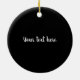 Lightweight, smooth, pure white ornament with nice sheen. Perfect size to be seen from across the room ... and to attract closer inspection! Price was great for ordering enough for the whole family! Clear, bold black design just as requested. Matches the order exactly. Just so nice!