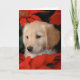 Golden Puppy and Poinsetta Christmas Card