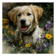 Pure delight shines from this adorable golden retriever puppy with floppy ears, sparkling eyes, and a happy tongue-out smile nestled among vibrant yellow, purple, and orange wildflowers. The lush meadow setting and soft painterly style create an irresistibly heartwarming scene full of springtime innocence and playful energy. Perfect for dog lovers, this cheerful digital artwork brings instant smiles to posters, canvas prints, phone cases, mugs, throw pillows, tote bags, and cozy home décor.