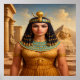Add a touch of luxury to your home decor with a captivating portrayal of an ancient Egyptian queen, dressed in luxurious golden robes and regal pharaonic headdress, with pyramids and the Sphinx in the background. An enchanting representation of beauty, power, and rich history.