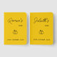Add a pop of joyful color to your wedding day with these vibrant yellow vow books. Featuring a clean, minimalist design with an interlocking ring motif and elegant hand-lettered script, this personalized pocket notebook set is perfect for the modern couple. These custom wedding keepsakes are designed to be easy to hold during the ceremony and serve as a bright, beautiful reminder of the promises you made on your special day.