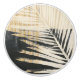 Golden Raffia II by Jennifer Paxton Parker. Features a single palm frond leaf silhouette in black and yellow/tan colors.
