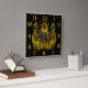 This artwork features a golden depiction of Jesus with outstretched hands, symbolizing peace and blessing. The radiant figure is highlighted against a simple backdrop, emphasizing the spiritual message conveyed by the gesture.