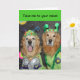 This card features golden retrievers dressed as fun and silly aliens in outer space. The text reads, "Take me to your cake!" and "Happy Birthday Earthling!".