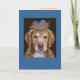 Golden Retriever with nesting bluebird hat on card for you to customize at no extra cost