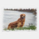 Stunning golden retriever at home and confident posing proudly by the lake.