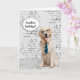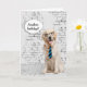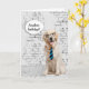 Golden retriever with speech bubble, striped necktie, and glasses on brick for any age birthday.
