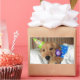 Ever been tired after a long day celebrating your birthday? This design features a photograph of a cute golden retriever dog tucked into bed, while wearing pajamas and a party hat and holding his teddy bear. Time for sleep!