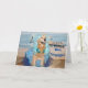 This bon voyage card features a golden retriever dressed as a nautical fairy, covered with shells, and holding a wand spelling out Summer. The text reads, “Bon Voyage!” and “Hope your trip is just BEACHY!”.