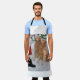 Great color and even though I ordered the kid size, it covers well enough to use during the holidays. I am not a big woman and prefer a shorter apron. I stand 5"6" and the length of the garment goes to mid-thigh. The tie straps fit well at my waist and even though there is no neck strap adjustment, the opening is plenty big enough. I am happy with the size and fit. I am sharing my apron with my 10 year old grandson, too! The color is vibrant and looks good, as shown on the website. The stitching looks strong and reinforced. Photographed is front side and back side of the apron, reinforced straps and coloring. My phone camera may not be the best at showing the details.