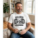 Celebrate being a 'Golden Dad' with this vintage-inspired Golden Retriever t-shirt. Featuring a bold athletic design and the funny caption 'Like a normal dad except much cooler,' this shirt is the perfect gift for Father's Day, birthdays, or new puppy announcements. The high-quality graphic is printed on a comfortable, durable tee that's ready for walks in the park or relaxing at home. Easily customize this template to make it a one-of-a-kind keepsake for any Golden Retriever lover!