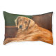 Handsome Golden Retriever painting on a dog bed. Perfect for dog lovers. Soft washable, durable material, with a black backing.