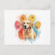 A golden retriever dog sits at the center, surrounded by a watercolor splash shaped like a paw print.