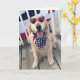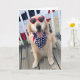 Happy fourth of July, America! Celebrate Independence Day the golden retriever way! Design features a happy dog smiling in his patriotic sunglasses and stars and stripes bandanna.