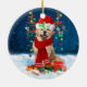 Golden Retriever Dog in Snow with Christmas Gifts Ceramic Ornament