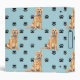 A beautiful Golden Retriever Dog wears a bow tie in the pattern on this binder. The dog images are placed on a black paw print and light blue background. The spine has a solid rectangle banner area for your own label. Perfect for anyone who has lost their heart to a Golden!