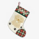 Perfect! Exactly what I ordered! I uploaded a picture of my blue chow, and the screen print was incredible. the back side of the stocking was the red and black checkered print. my puppy's name was also printed on the cuff of the stocking. PERFECT! Highly recommend this product! My puppy's name was screen printed onto the cuff of the stocking, the font was perfect!