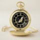 A shiny gold silhouette sitting Retriever is the feature at the center of this elegant pocket watch. The dog image is framed by matching gold Roman numerals, and placed on a dramatic black background. Perfect for anyone who loves a Retriever, or just the nostalgia aspect of the dog image.