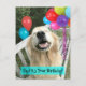 Someone is having a birthday! Celebrate in style with this cute postcard! Design features a smiling golden retriever dog on a park bench, surrounded by colorful balloons. Text on front reads, "Yay! It's Your Birthday!" while customizable text on back states, "Let's celebrate! Hope you have the best day!"