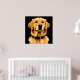 Vivid illustration of a golden retriever wearing a black collar against a dark background. Highlights the dog's friendly expression and distinctive fur texture, encapsulating warmth, loyalty, and companionship.