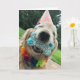 Send special birthday greetings with this cute card! Design features a photograph of a happy golden retriever dog who is wearing a party hat and holding a "happy birthday" bone-shaped cookie in his mouth. Customizable inside text reads, "Hope you enjoy!"