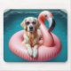 Golden Retriever Floating In a Flamingo Float Mouse Pad