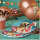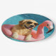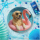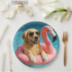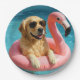 Golden Retriever Floating On a Flamingo Pool Toy Paper Plates