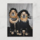 This post card features golden retrievers dressed in the goth style with black clothes, black hair, and spikes.