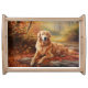 Golden Retriever in Autumn Leaves Fall Inspire Serving Tray